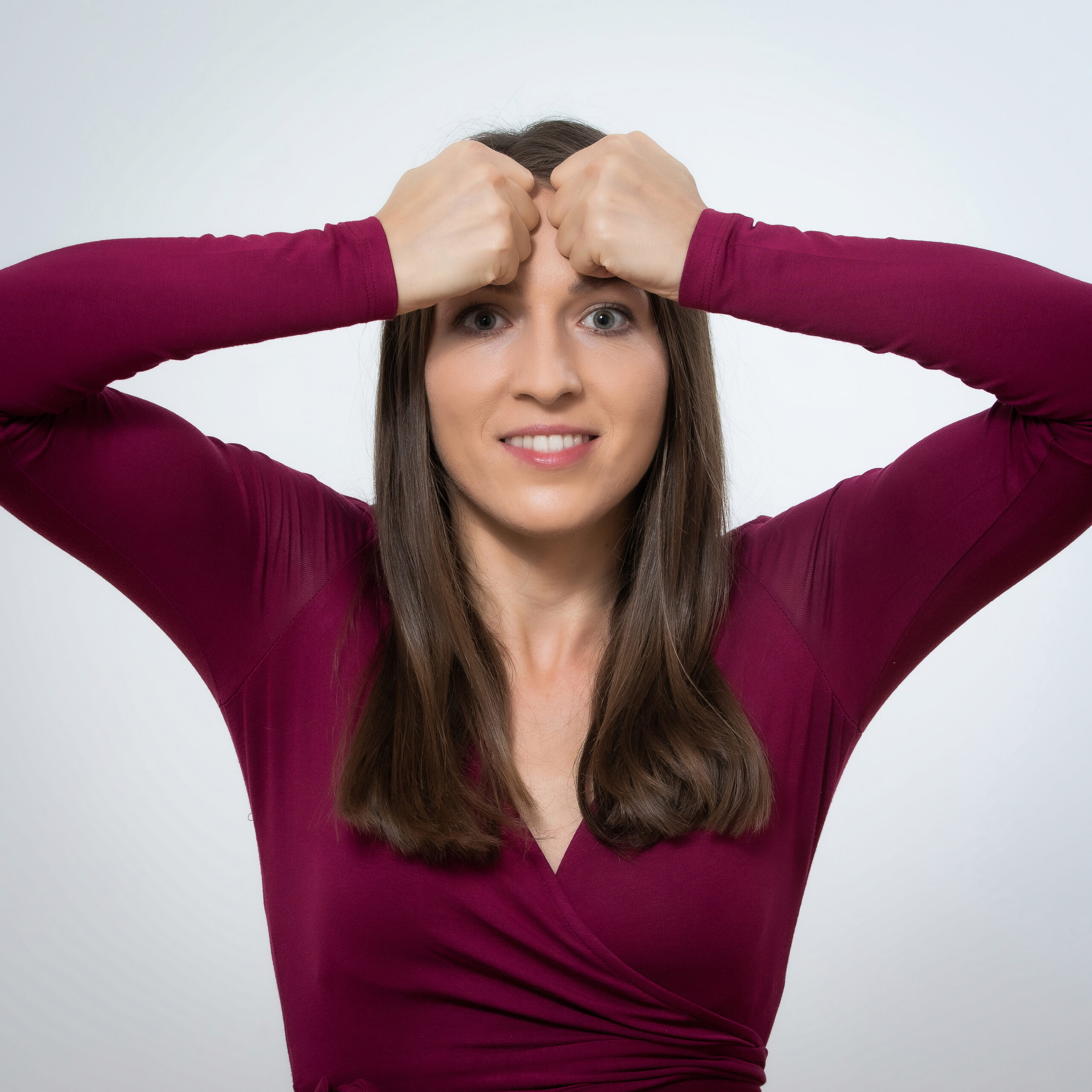 • Du wirst spüren, wie die Stirn entspannt – und das ist ganz wichtig, um faltenproduzierende Gewohnheiten abzulegen.