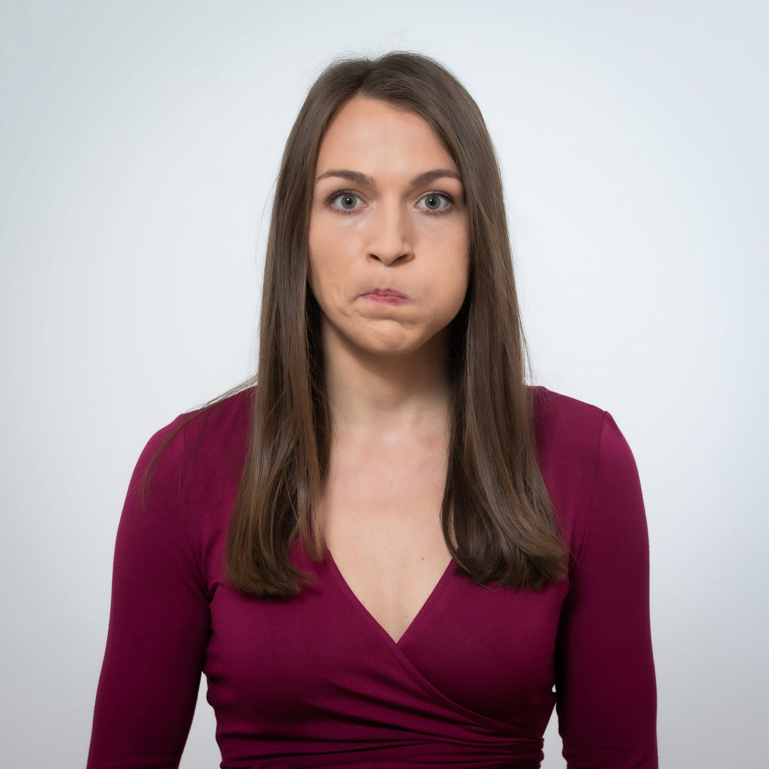 - Mund sehr deutlich zum Wort „WOW“ formen (hier ist Übertreibung erwünscht, doch die Stirn bleibt ruhig).