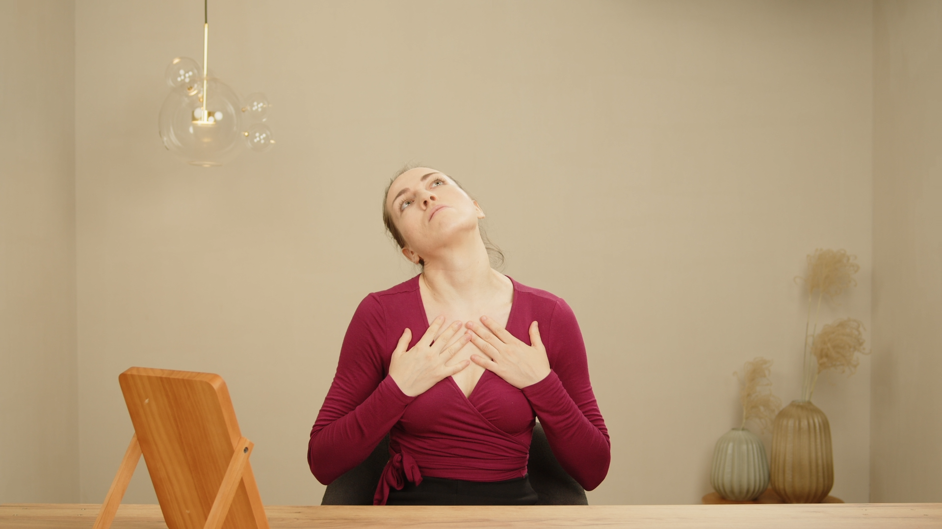Damit du gleich praktisch starten kannst, zeige ich dir hier eine meiner Lieblingsübungen für einen straffen Hals. Sie ist leicht zu erlernen und kann in wenigen Minuten am Tag durchgeführt werden.